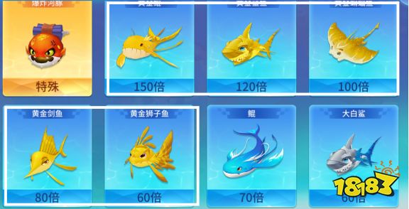 2、接下來出場的是稍微有點普通,沒有特殊能力,卻身懷寶藏的黃金家族。黃金鯤,黃金大白鯊都是這一家族的成員。它們最特別的是部分黃金魚身上藏著獎券,擊殺后,不僅可以獲得高昂的金幣獎勵,還可以獲得大量的獎券。并且想要尋找海神寶藏,需要捕獲黃金魚作為敲門磚哦!