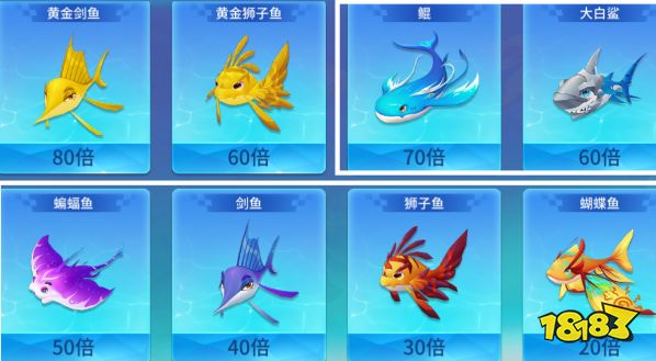 1、首先先為大家介紹一下游戲內最為普通的普通魚,船長可以打開圖鑒查看一下具體的魚種,比如鯤,獅子魚等都是普通魚。它們的區別是倍數的大小,船長捕獲它們后,即可獲得倍數*炮倍的金幣獎勵。